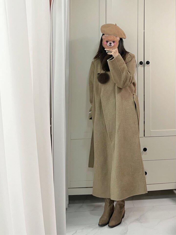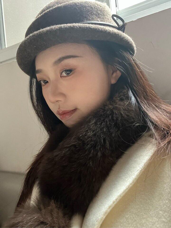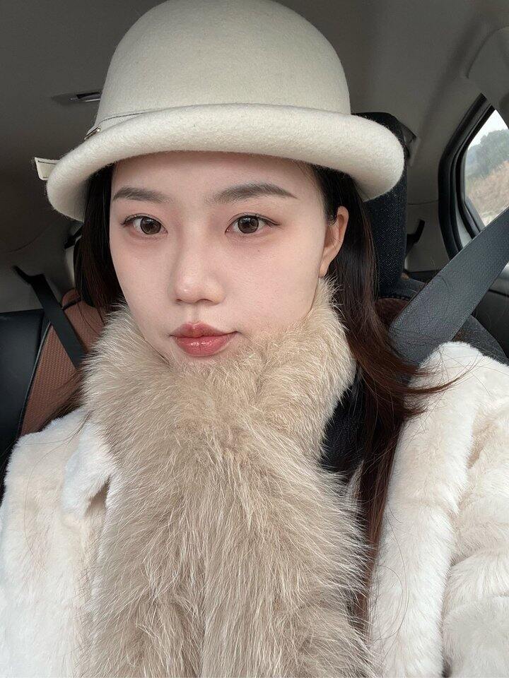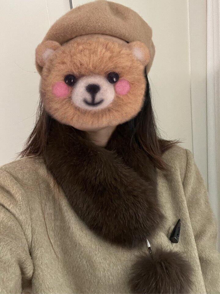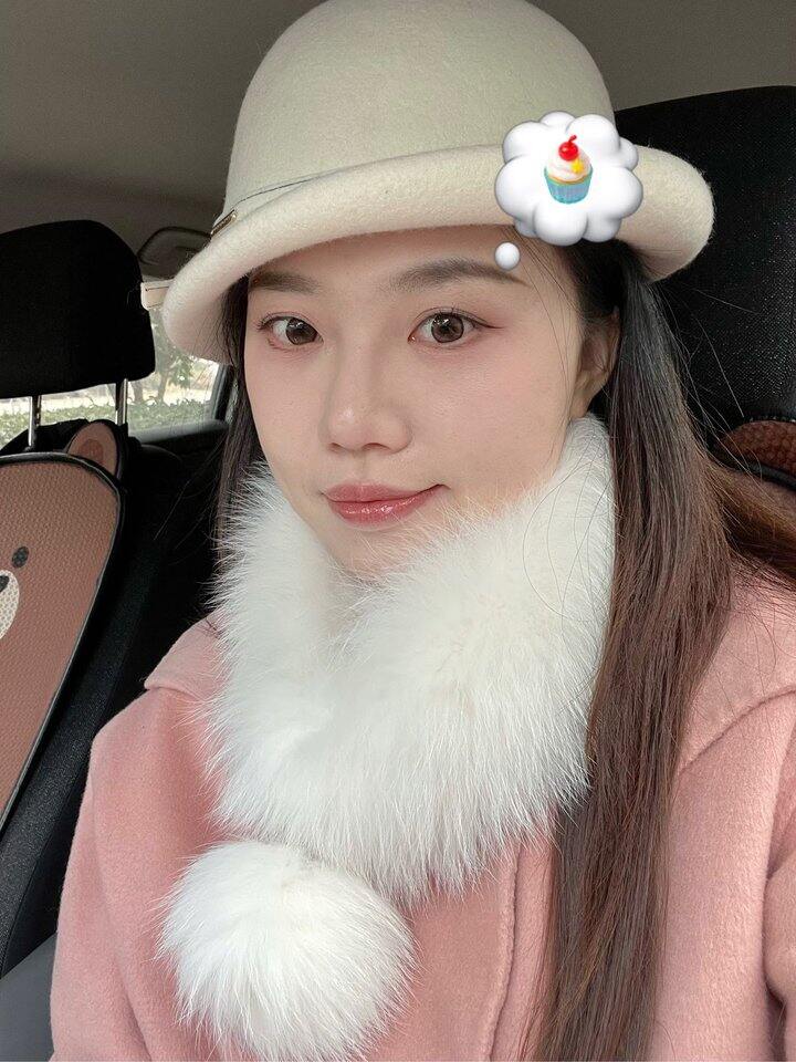 背面是短毛贴着脖子是舒服的,下面的球球可以拆掉两用!就是我买的咖色很深容易显老气hh
