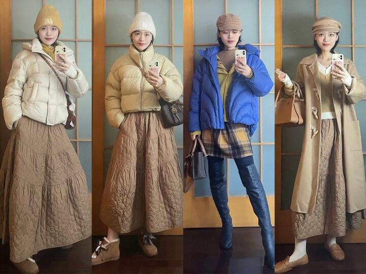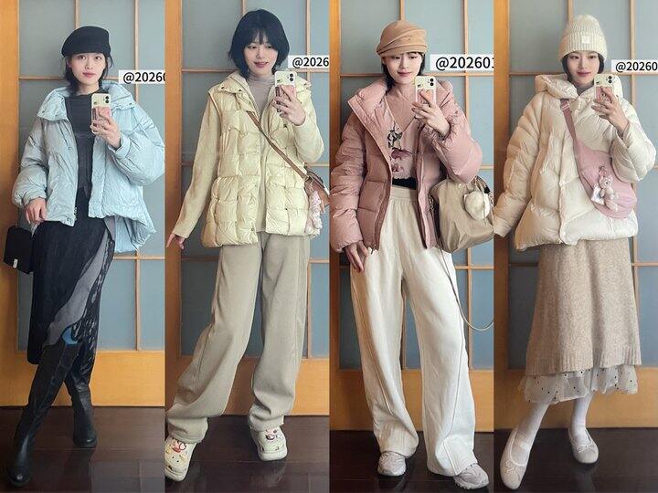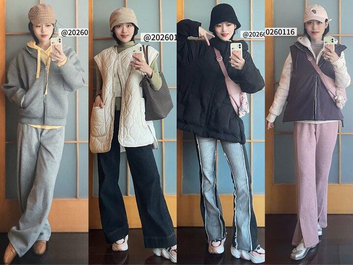 保暖向:羽绒服马甲 + 长袖T恤 + 针织开衫 + 阔腿裤