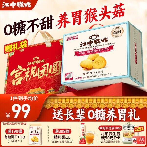 领99-30补贴卷https://coupon.m.jd.com/coupons/show.action?key=c9mccfs7o2a94ade914b068798d68f62&roleId=2088505000&to=m.jd.com江中猴姑养胃饼干礼盒0糖高钙不甜版酥性960g https://u.jd.com/JGXqgh1,