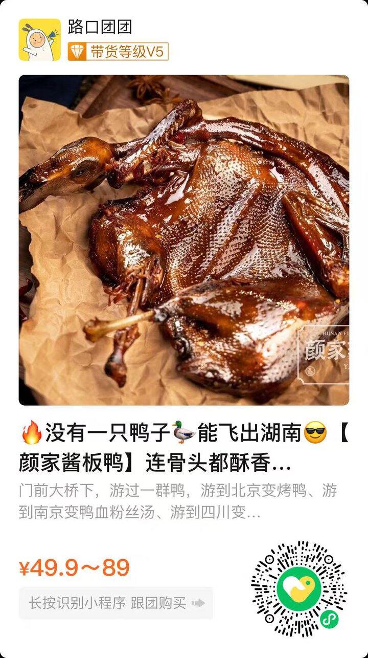 官旗舰店300g精装鸭要💰58,开团福利价一只💰49.9!两只到手89元~~(微信扫码下单)