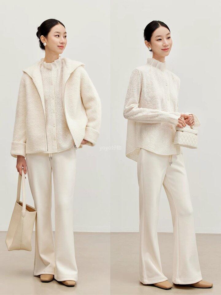 领口木耳边需师傅手工压褶定位,确保每一道褶皱都均匀自然