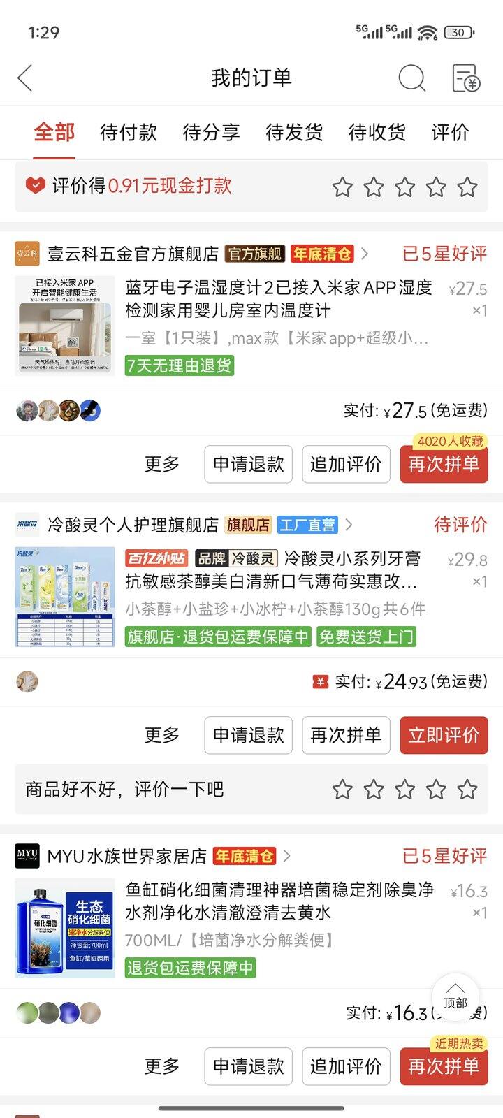 购后晒单