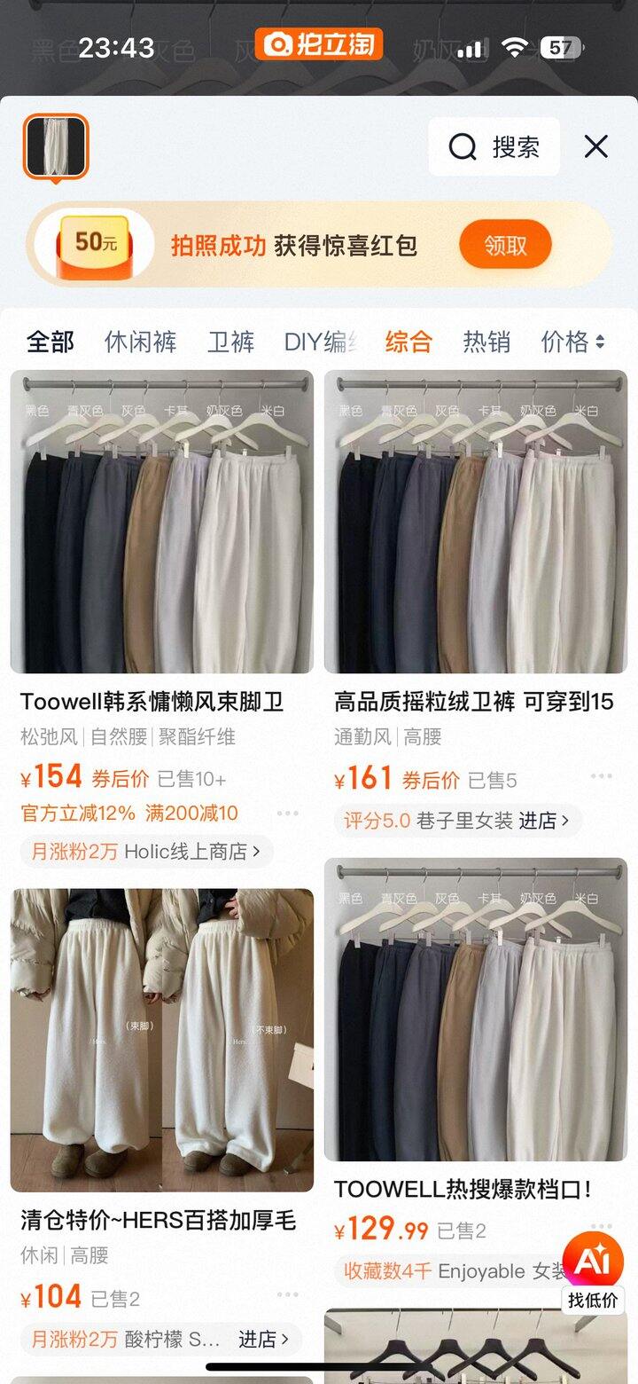 Toowell摇粒绒缩脚卫裤,好厚好爱!
