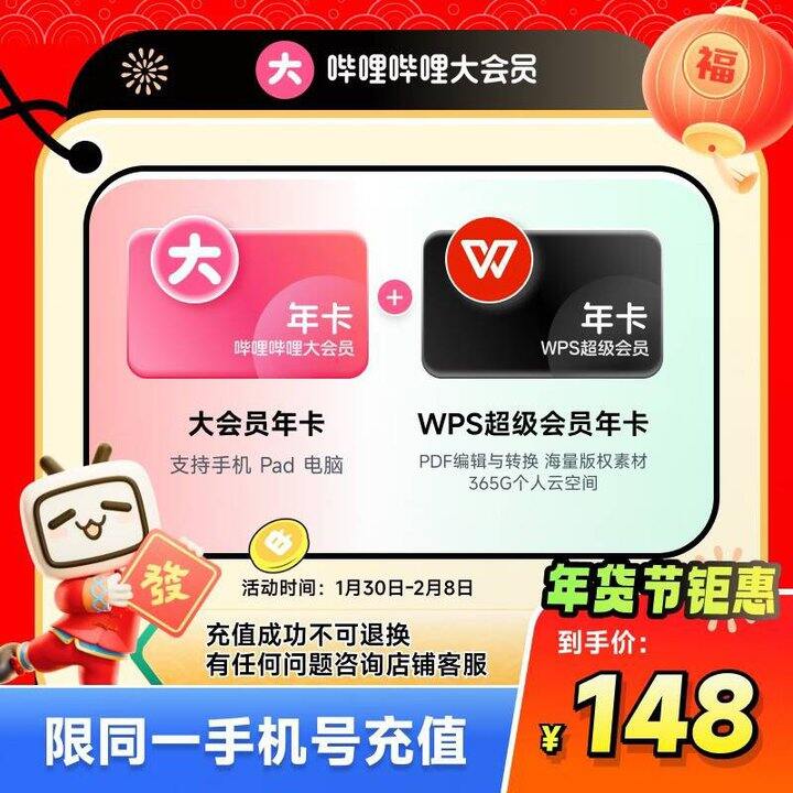 148元 大会员年卡+WPS超级会员年卡