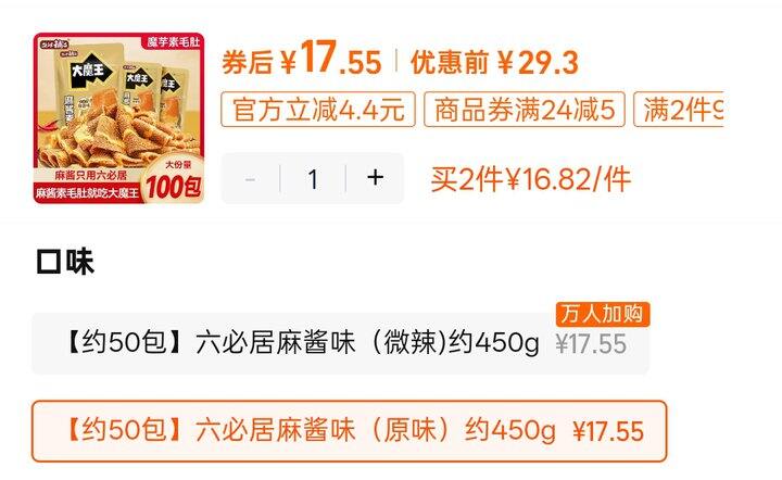 这个好吃,我买过好多次了,六必居的芝麻酱很香很香,热量也还好不高,今天价格比之前便宜,