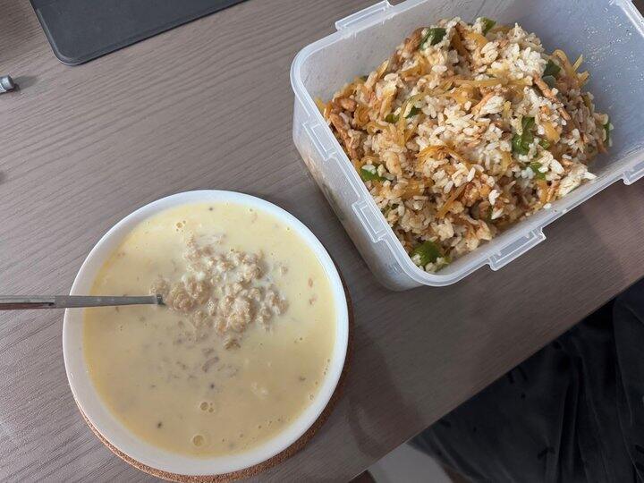 我的晚餐 鸡蛋牛奶燕麦 亲亲的炒菜大米饭