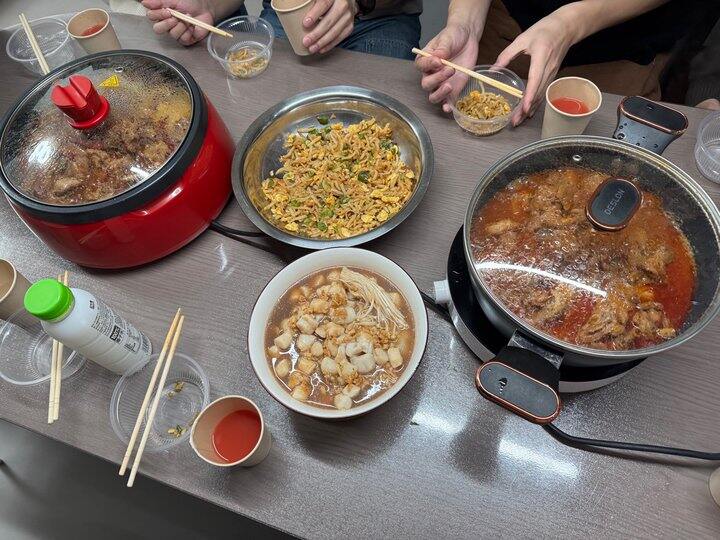 午餐 西红柿炒蛋拌饭 蚝油生菜 虾仁 大鸡腿子