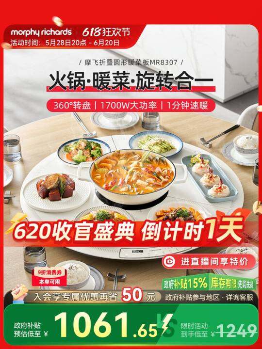 摩飞折叠暖菜板可旋转圆形餐桌转盘保温垫家用加热饭菜神器热菜板