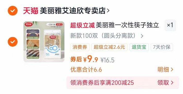 美丽雅一次性筷子100双