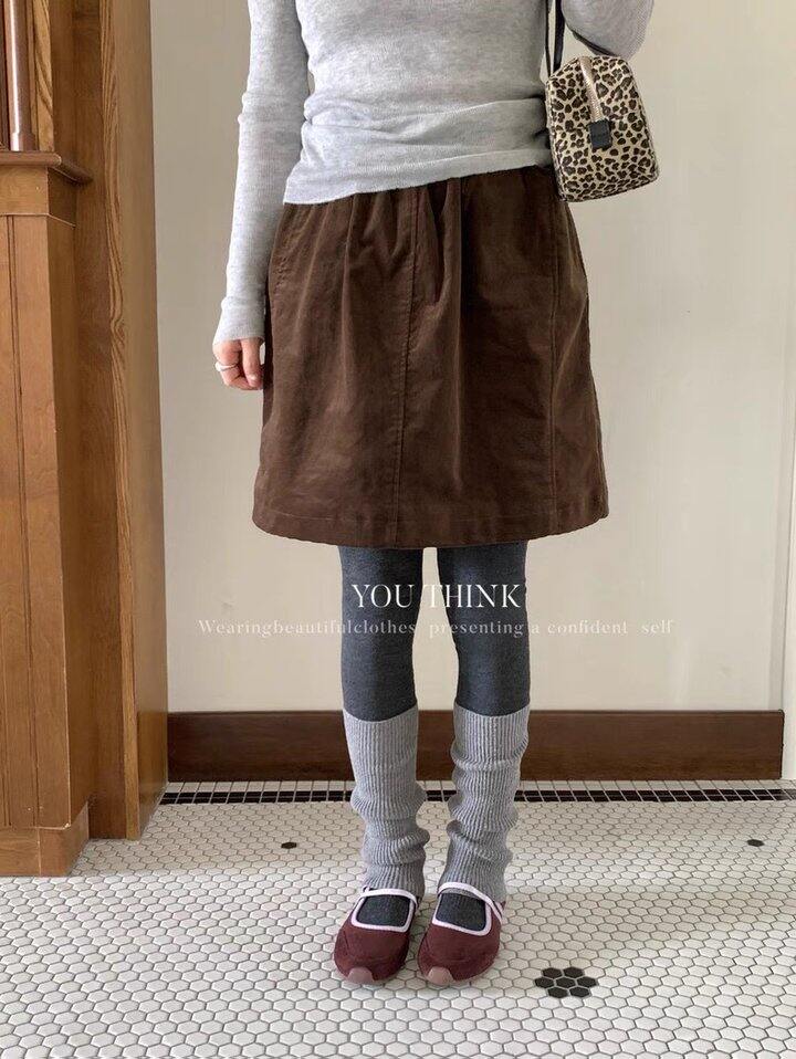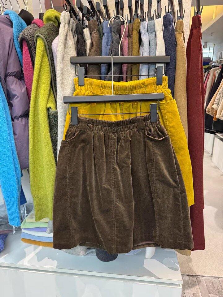 很厚实的卷边领口全羊毛毛衣+灯芯绒加绒半裙