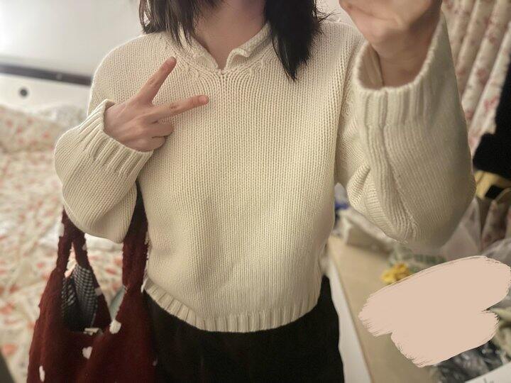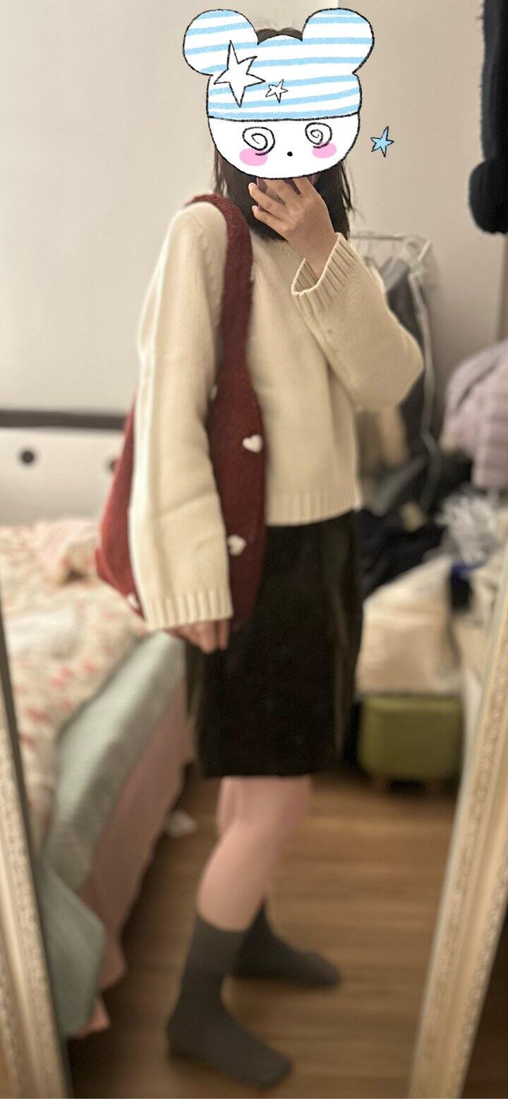 毛衣是短款,160以下妹子穿肯定更可爱啦,毛衣150,半裙50。包包也挺可爱的,15不包邮(买其他可顺带)