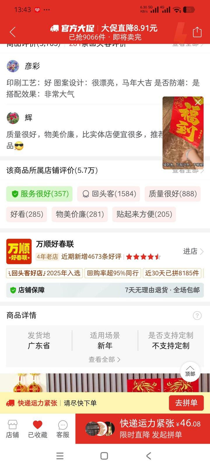 发不了链接,是拼多多店铺 【万顺好春联】