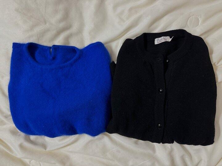 4、继续昨天同一家拿的,宝蓝色圆领羊毛衫,黑色针织开衫。