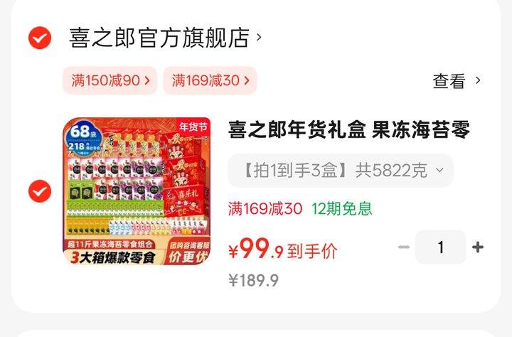 仅33/盒,妈耶这个组合也太扎实了,足足11.6斤!!平均一个接近4斤了😱买了,比我去年买的划算多了,里面啥口味的果冻都有,还有海苔,真是比单独买还划算!这个礼盒小朋友收到肯定超开心,马上拆了吃了[胖鹿偷笑]包个大红包都没这个礼盒效果好😂