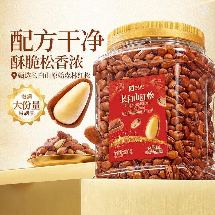 ⭐️ 良品铺子长白山红松800g A++级东北手剥松子仁大颗粒坚果,拍1件