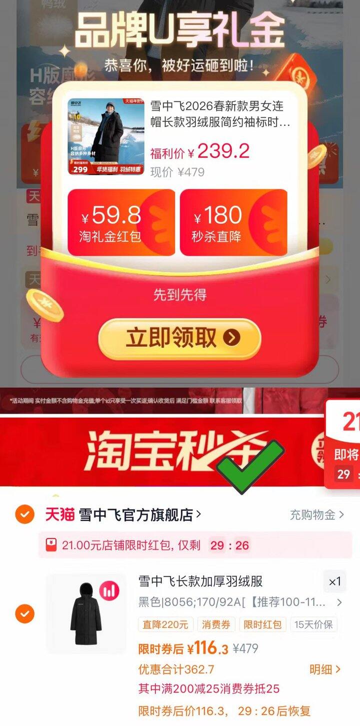 冰洁淘礼金补贴合集|羽绒服300多