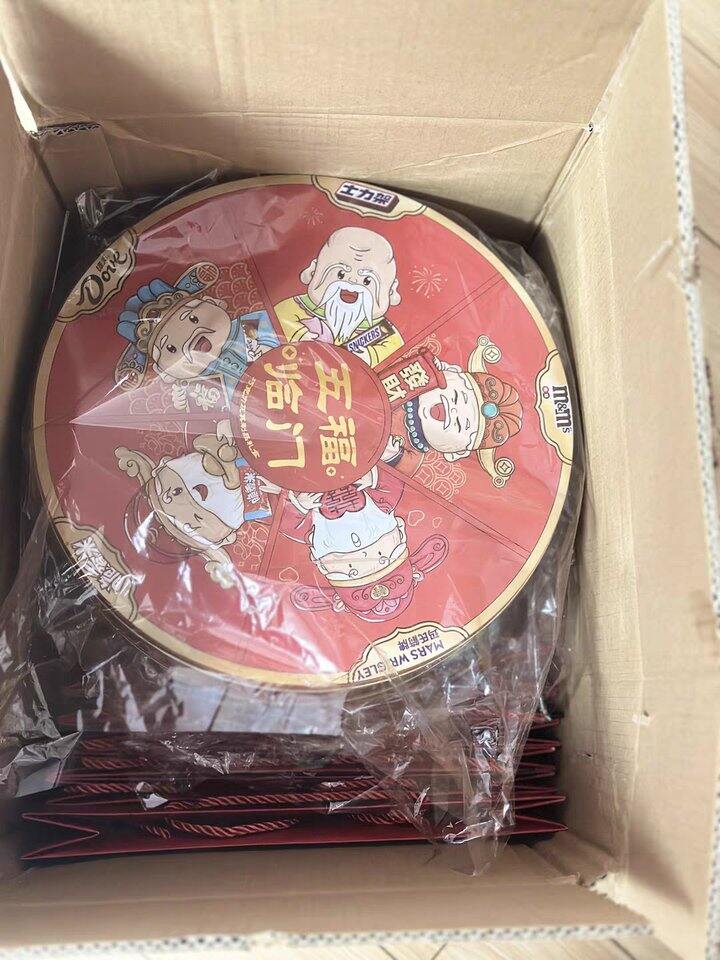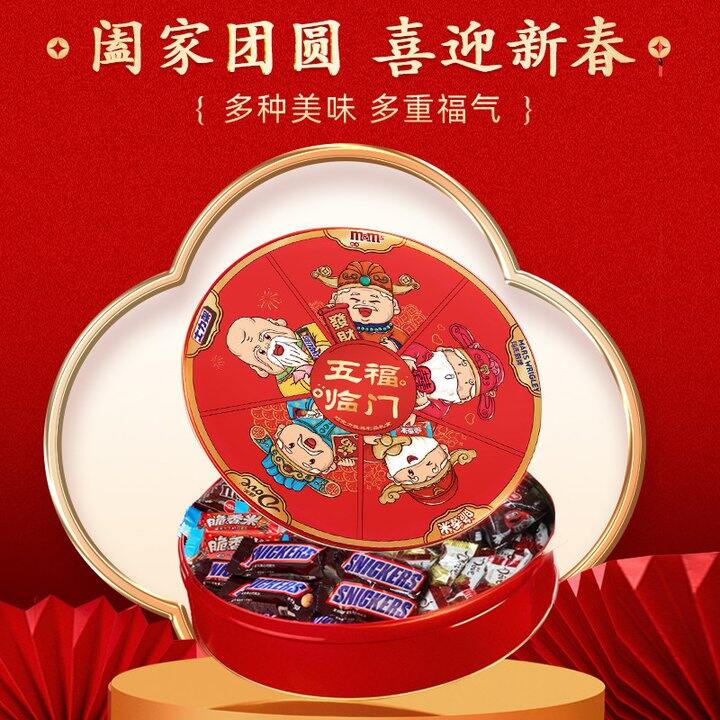 897g 超大分量!德芙 + 士力架 + m 豆 + 脆香米全齐活 ✅️红金圆盘印着福禄寿喜财~
