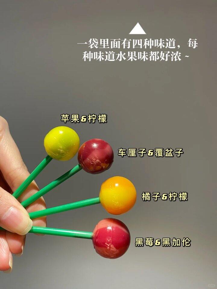 一包大概有🈶四个味道:⭕苹果🍏柠檬⭕鲜橘🍊柠檬⭕黑莓🫐黑加仑⭕樱桃🍒覆盆子,每一种味道都非常好吃❗酸酸甜甜的,水果味儿特别浓郁❗而且富含维他命,边吃边能补充维生素❗别说小朋友不能拒绝,我自己没事也爱吃几根~