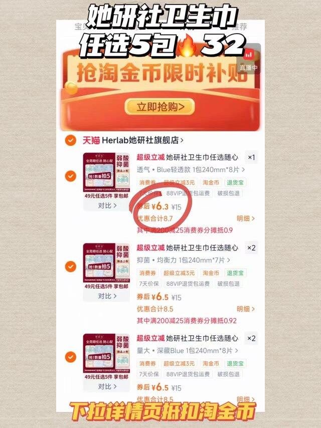 她研社卫生巾6块一包❗️全系列任选❗️超市一包就要十几块!量大直接冲深藏blue!超级好用!中新网认证放心拍!!!