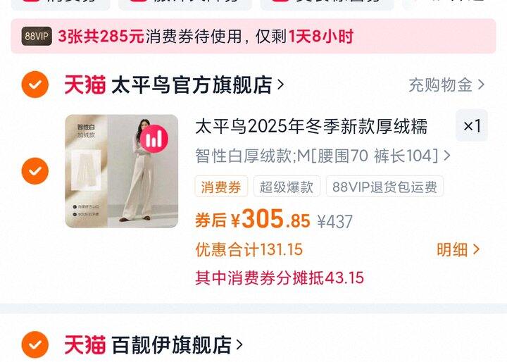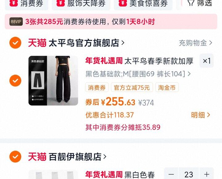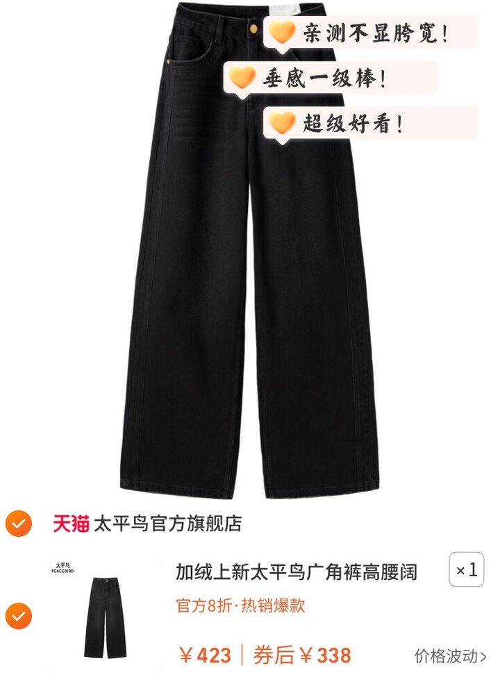 1、太平鸟广角裤https://m.tb.cn/h.7GgJ9v2弹67礼金,淘金币页面加购