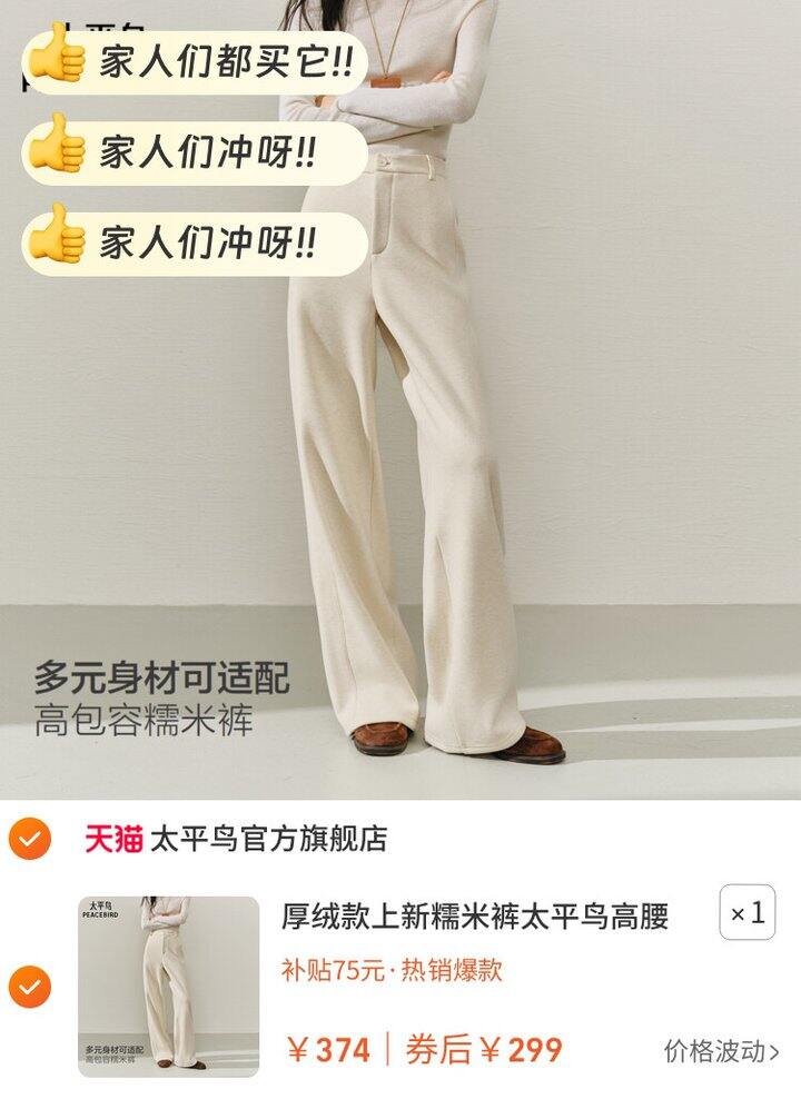 1、厚绒款上新糯米裤太平鸟高腰直筒裤25冬季新款阔腿雪尼尔休闲裤女https://m.tb.cn/h.7tTETe3弹59礼金,直接加购
