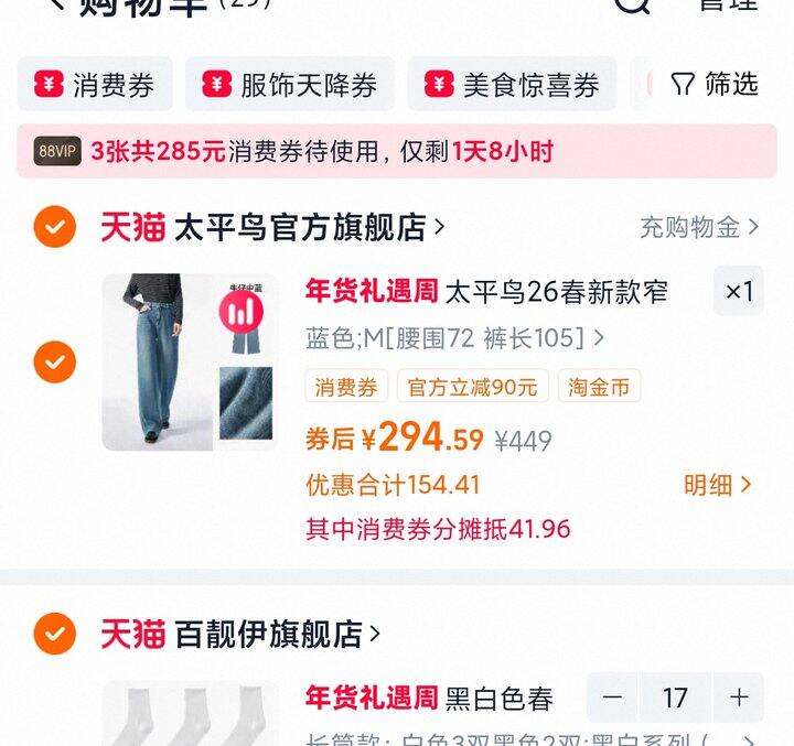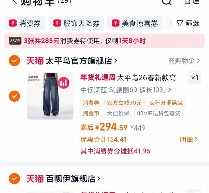 1、太平鸟高腰阔腿牛仔裤26年春款宽松显瘦廓形茧型香蕉弯刀牛仔裤女https://m.tb.cn/h.7H7XL3E弹71.8礼金,淘金币页面加购