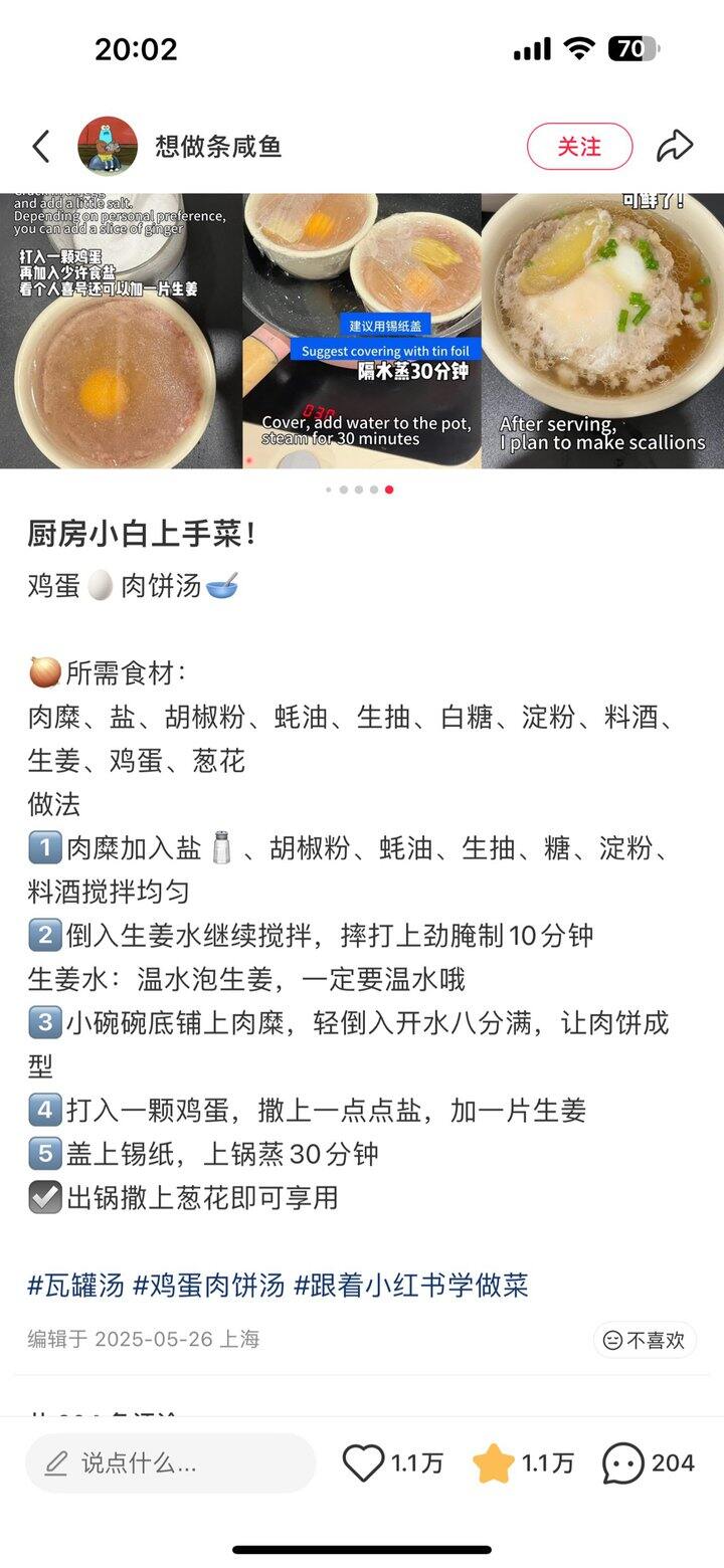 鸡蛋肉泥汤,按照这个,肉很嫩,我用的里脊肉。