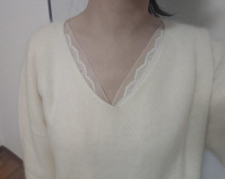 💛帕什——版型合身,面料薄,微透,V领会露出秋衣边边