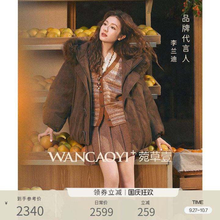 【李兰迪同款】菀草壹摩卡羽绒服2025冬貉子毛领皮外套Y26601551
