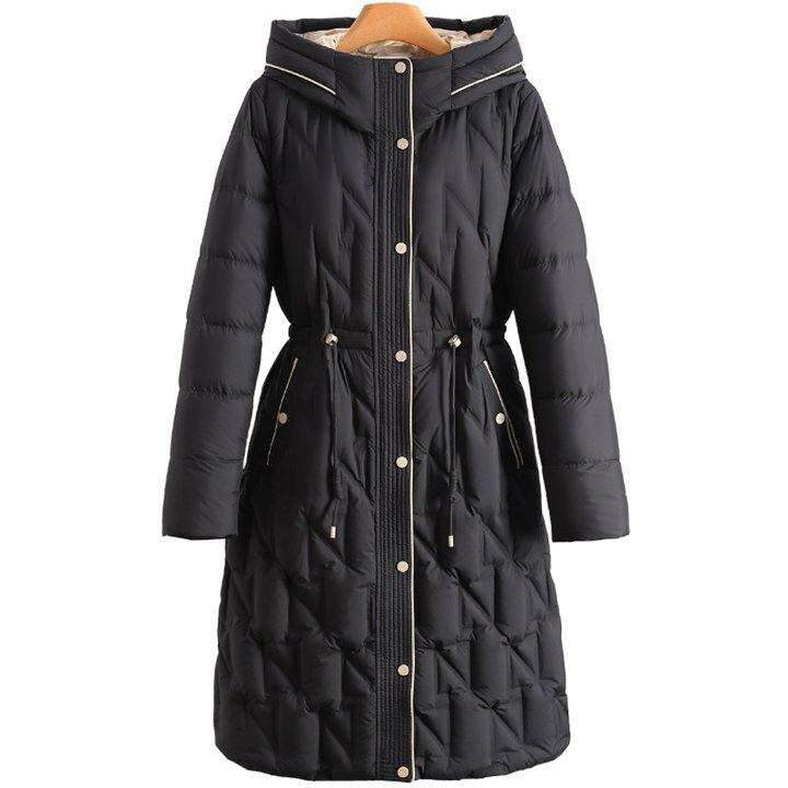 专柜价5990【娜】鹅绒连帽收腰保暖中长版鹅绒衣品牌女装25冬外套
