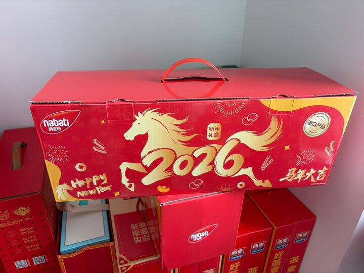 就是这个伊利牛奶,我是单独pdd上配了手提袋,因为包是那种环保木色包装,不是特别喜庆,具体效果可以建第一张图