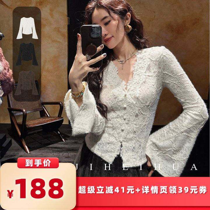 【所有女生的衣橱直播间】三吉黑花【花漓】蕾丝花边打底衫半高领