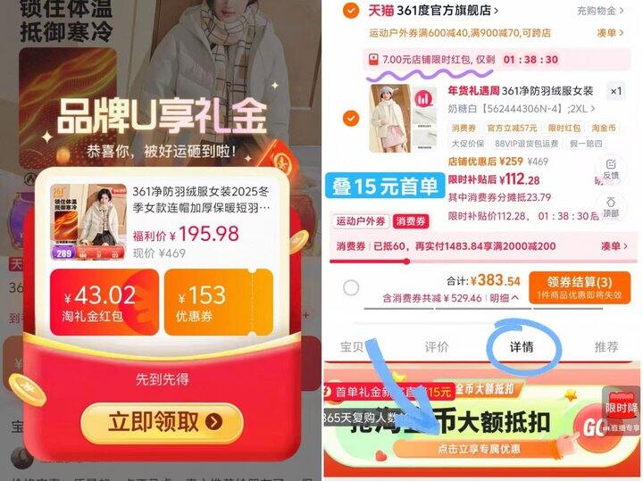 𝐁𝐮𝐠‼️𝟏𝟏𝟐💰361净防羽绒服