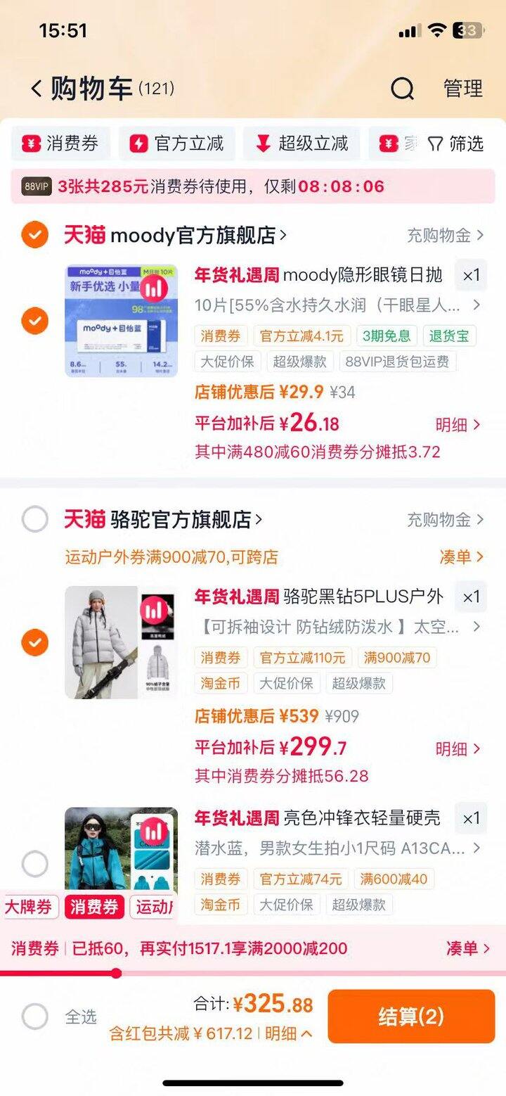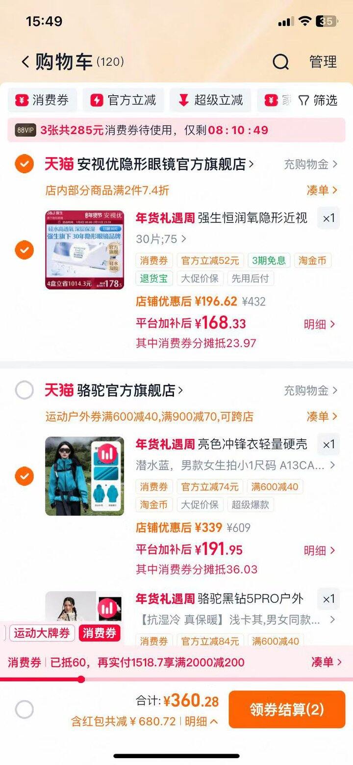 骆驼黑钻5PLUS户外羽绒服:https://s.click.taobao.com/OfgqZtn,领84.42淘礼金,宝贝右上角 ··· 点开➠ 右下角“淘金币” ➠ 进入后点“足迹加抵”➠“浏览过”中找到宝贝加购1件;