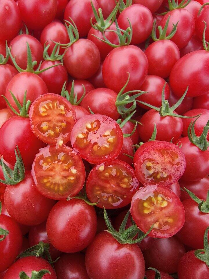 圣女果,平时我们叫它“小柿子”🍅,国外又有“爱情之果”之称,它的大名叫樱桃番茄,。它既是蔬菜又是水果,不仅色泽艳丽、形态优美,而且味道适口、营养丰富。圣女果被联合国粮农组织列为优先推广的“四大水果”之一,除了含有番茄的所有营养成分之外,其维生素含量是普通番茄的1.8倍。除此之外还含有谷胱甘肽、番茄红素、维生素PP 苹果酸、柠檬酸。
