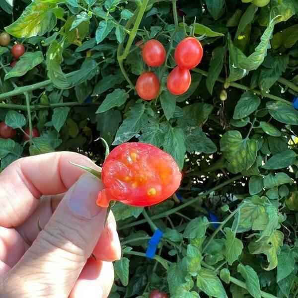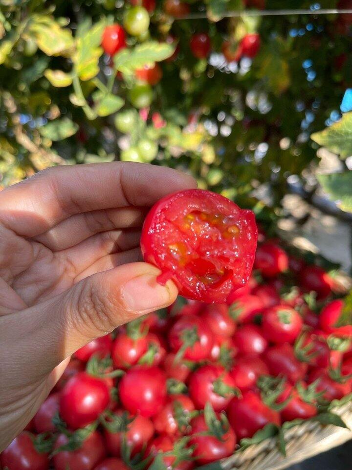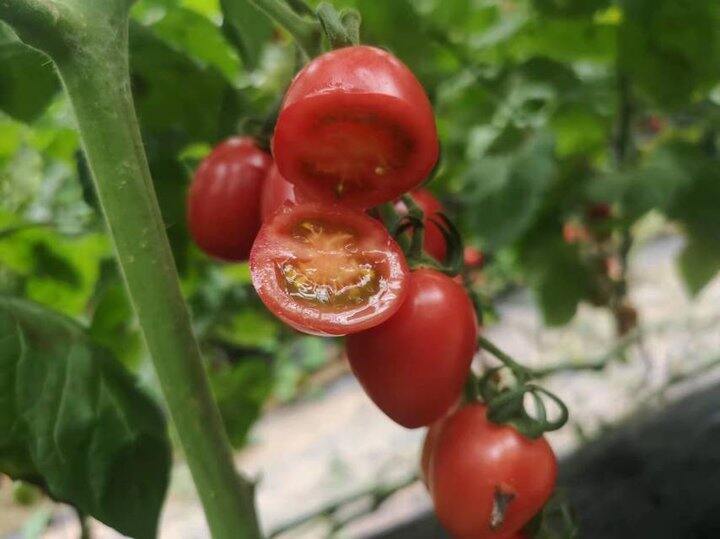 她是同类产品中品质最好的小番茄,它外型小巧,其果型圆润,形似樱桃,在番茄界不仅艳压群芳,还味压群芳。用刀划开,红色的汁液就止不住地往外流,刚切一小半,满手都是鲜甜的汁水~