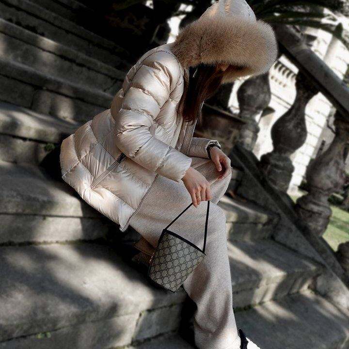 羽绒码头白鹅绒服小个子高端收腰女短款加厚超大真毛领嫩黄色修身