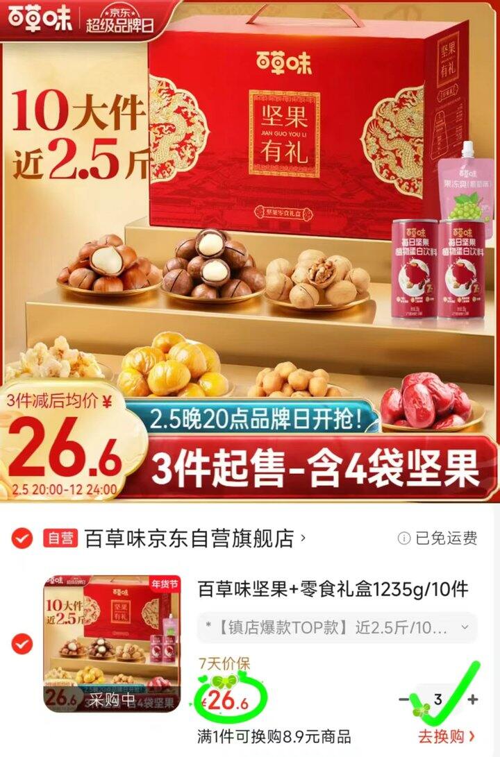百草味💰26.6❗这款好像昨天都要30多吧,今天就降价了,