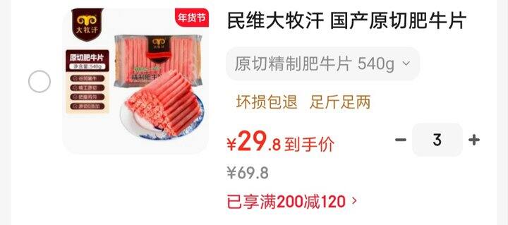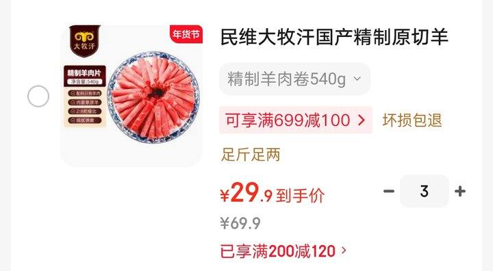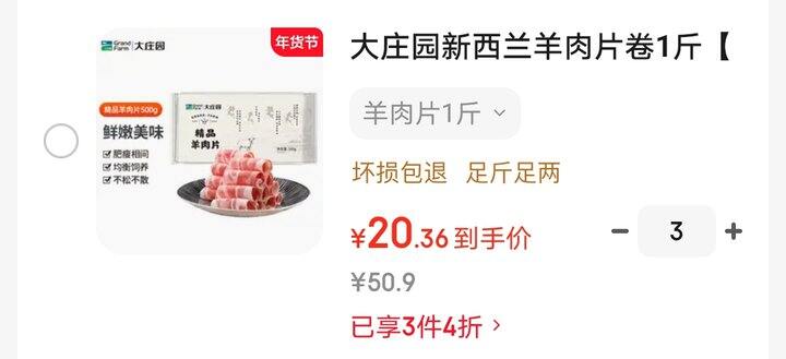 大庄园羊肉片,20一斤。非原切拍3件https://u.jd.com/Jaxb3Af