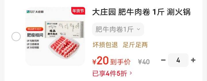 大庄园肥牛卷,20一斤。非原切拍4件https://u.jd.com/JrUjXbD