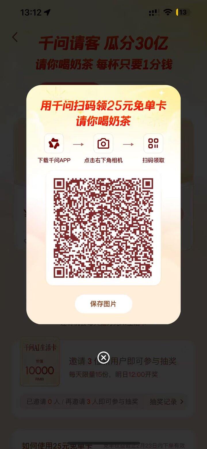 可以的话可以扫我码,我也可以得一杯!不扫也没事,自己下载千问,左上角30亿