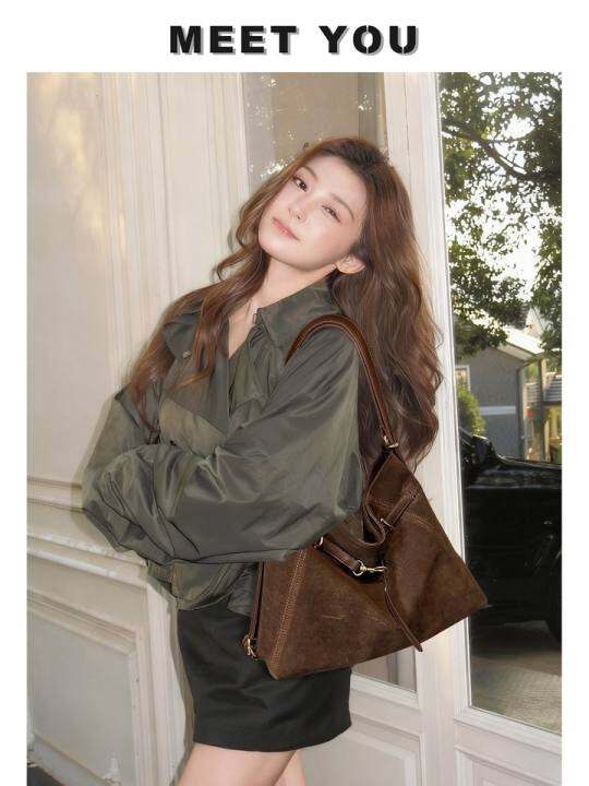 秋冬咖色麂皮双肩包包女大容量2025新款轻奢小众高级感通勤斜挎包