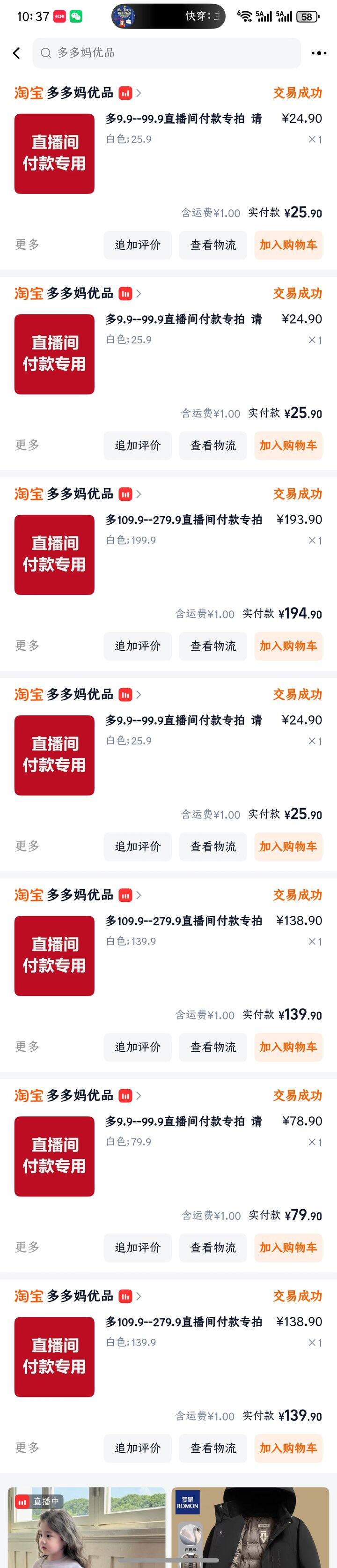 几乎一整天都在直播,也是买了很多,主要播巴拉,我在这家店买了四个婷美的内衣,好穿得要发财[哈哈]太收副乳了