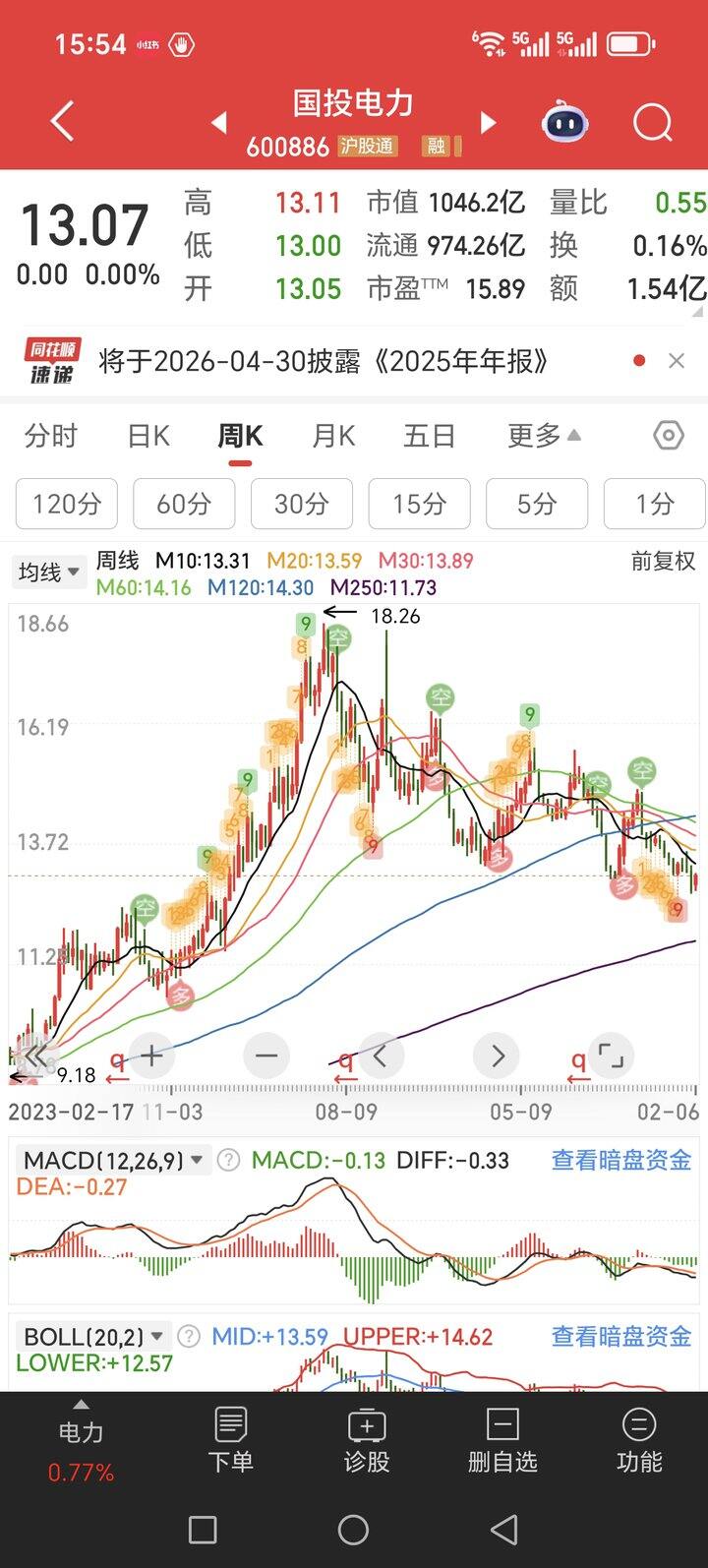 周macd出坑后,也可能是假动作,需结合股息和基本面,如果是假动作及时止损卖出,比如国投电力。