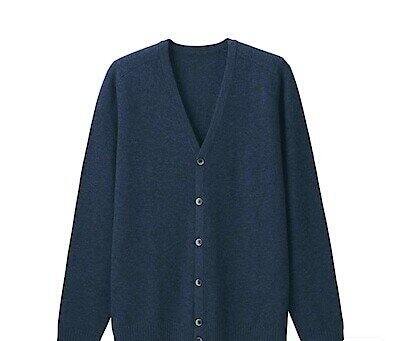出muji全新牦牛绒混羊毛开衫烟熏蓝s码