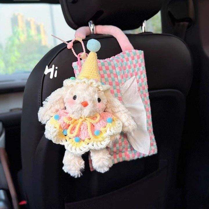 创意新款车载纸巾盒可爱兔兔车内多功能抽纸盒座椅收纳悬挂式高级