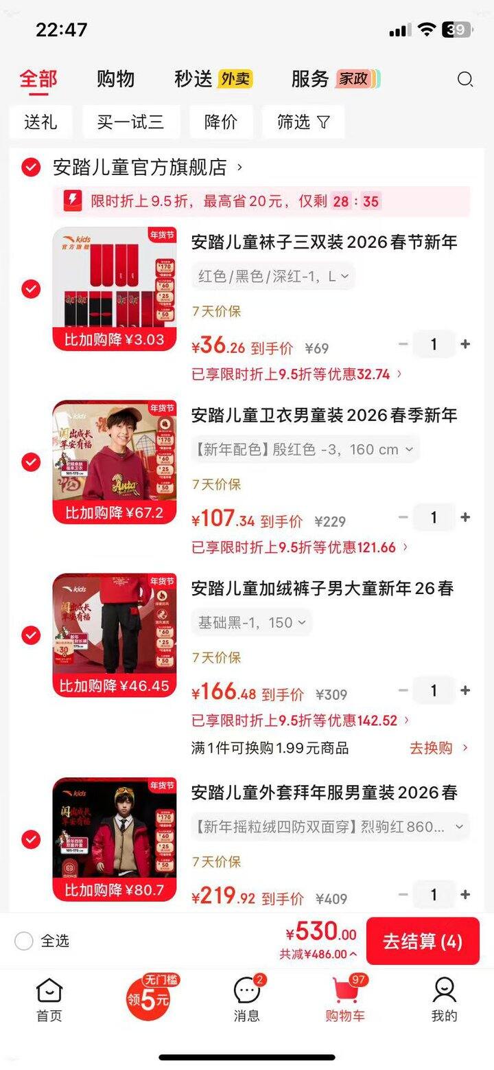安踏儿童2026春季新年款加绒保暖马年红色卫衣:https://u.jd.com/lD8xUr9