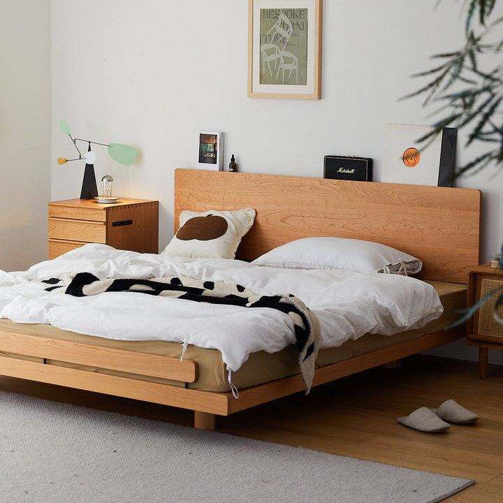 出乎生活壹隅齐边床薄床头小户型樱桃木主卧北欧日式1.8m全实木床