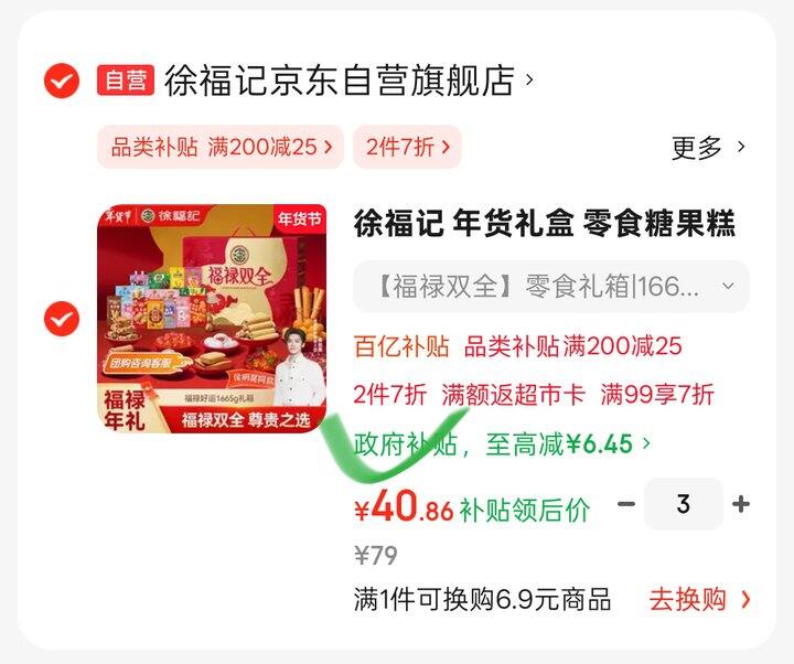 页面领9.5折国补券,拍3件122.6元