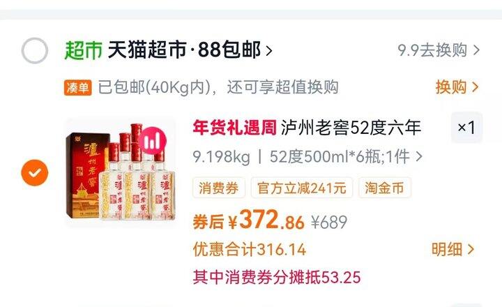 泸州老窖六年窖头曲52度白酒500ml*6瓶淘金币会场加购抵扣21.89 https://m.tb.cn/h.7vmlTeR